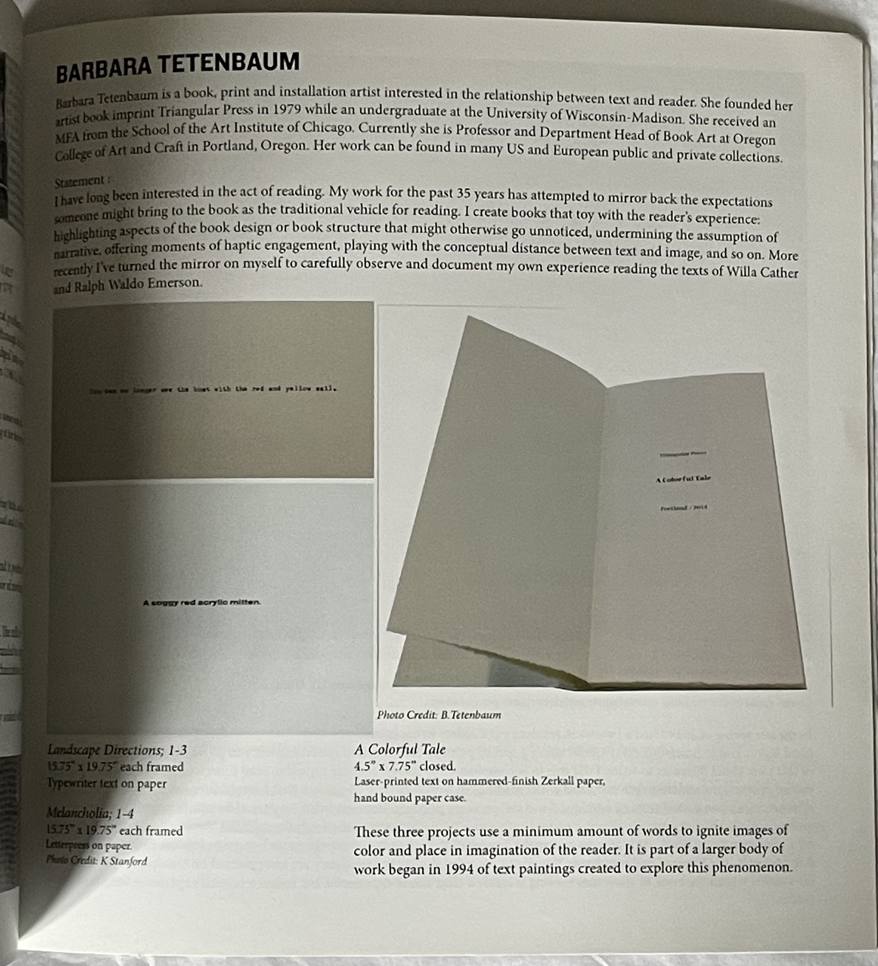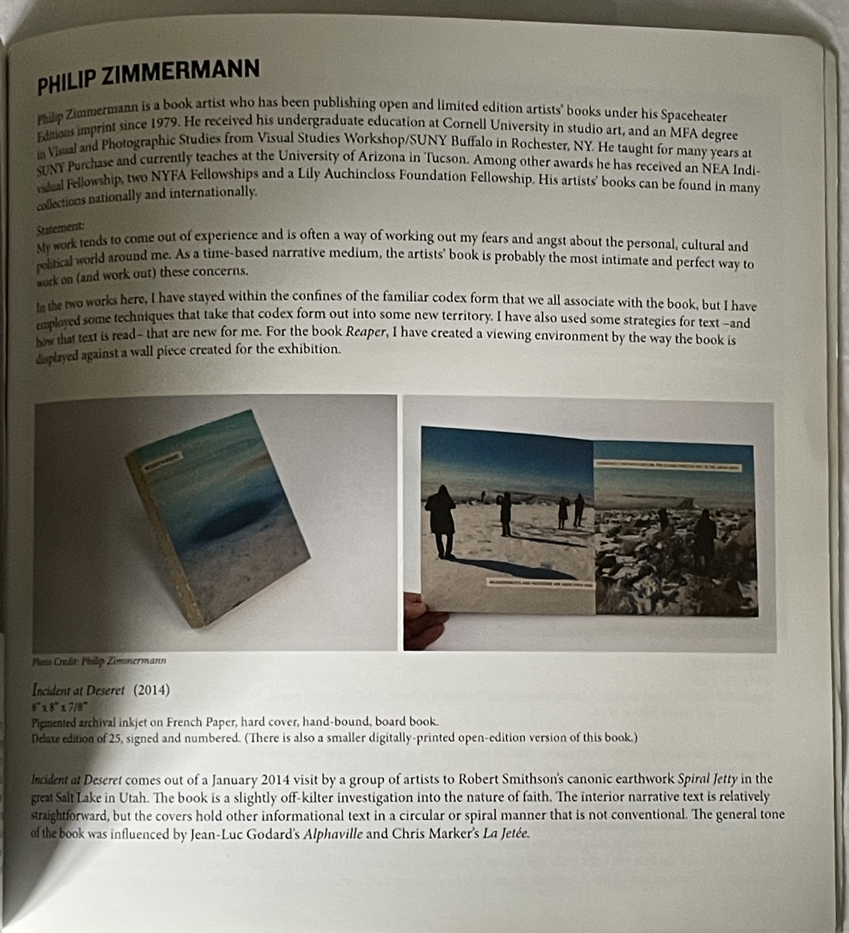 Spector, Buzz. “Art Readings” in The Book Maker’s Desire (Pasadena, CA: Umbrella Editions, 1995), p. 13.