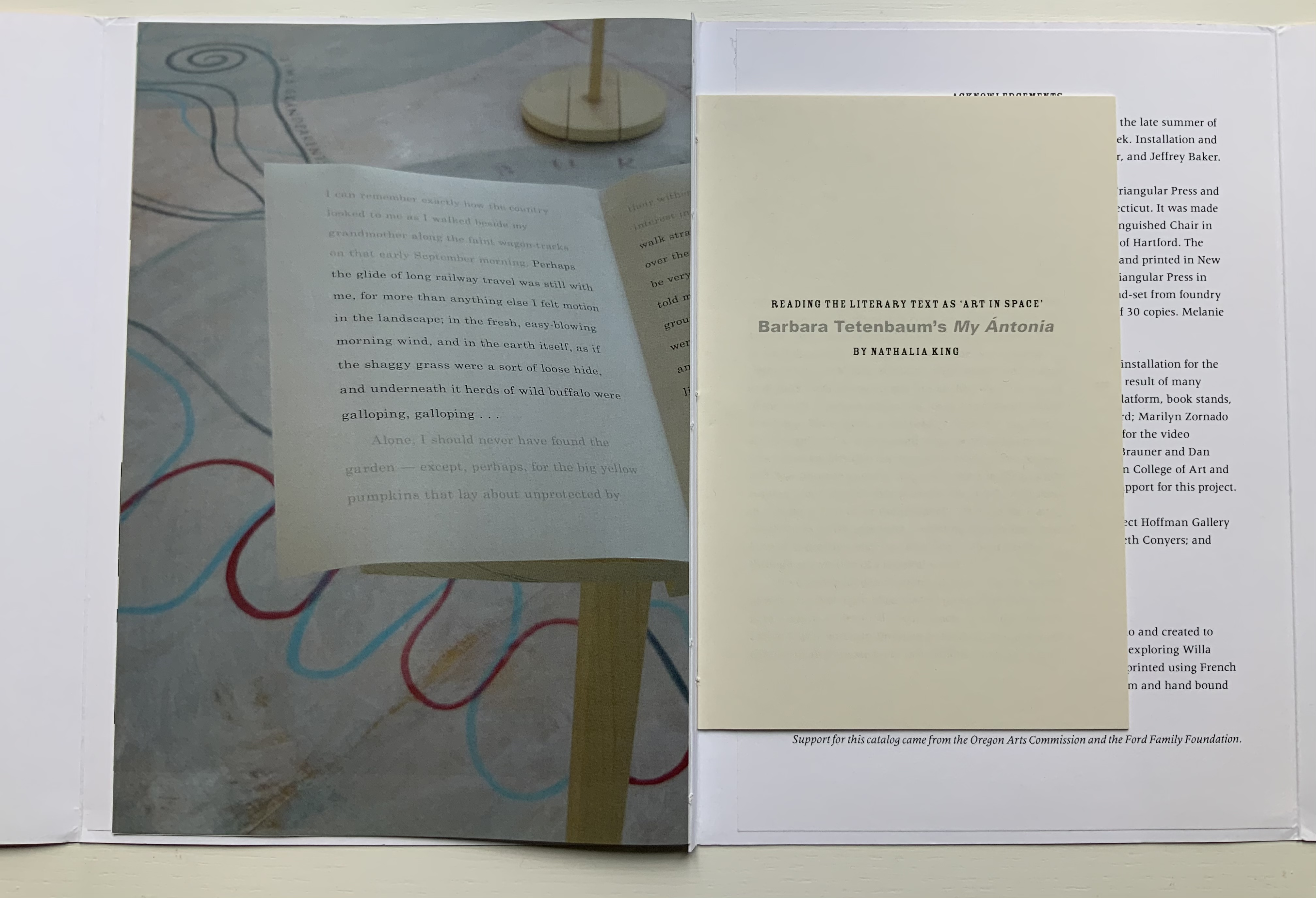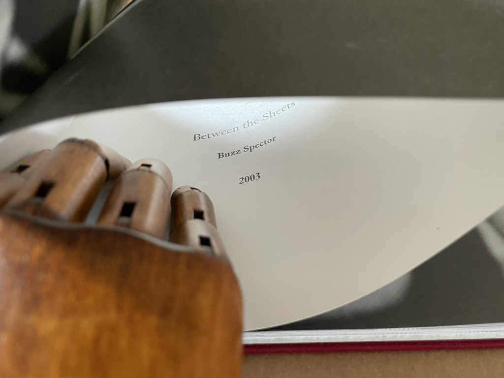 Along with Unpacking my Library, Between the Sheets (2003) is the only other of Spector’s limited edition artist’s books in the Books On Books Collection. It is the solo exhibition to the joint exhibition of The Book Made Art (1986), described at the outset of this entry. In Between the Sheets, Spector again shows the self-reflexiveness of book art but also demonstrates how originality can spring from it.