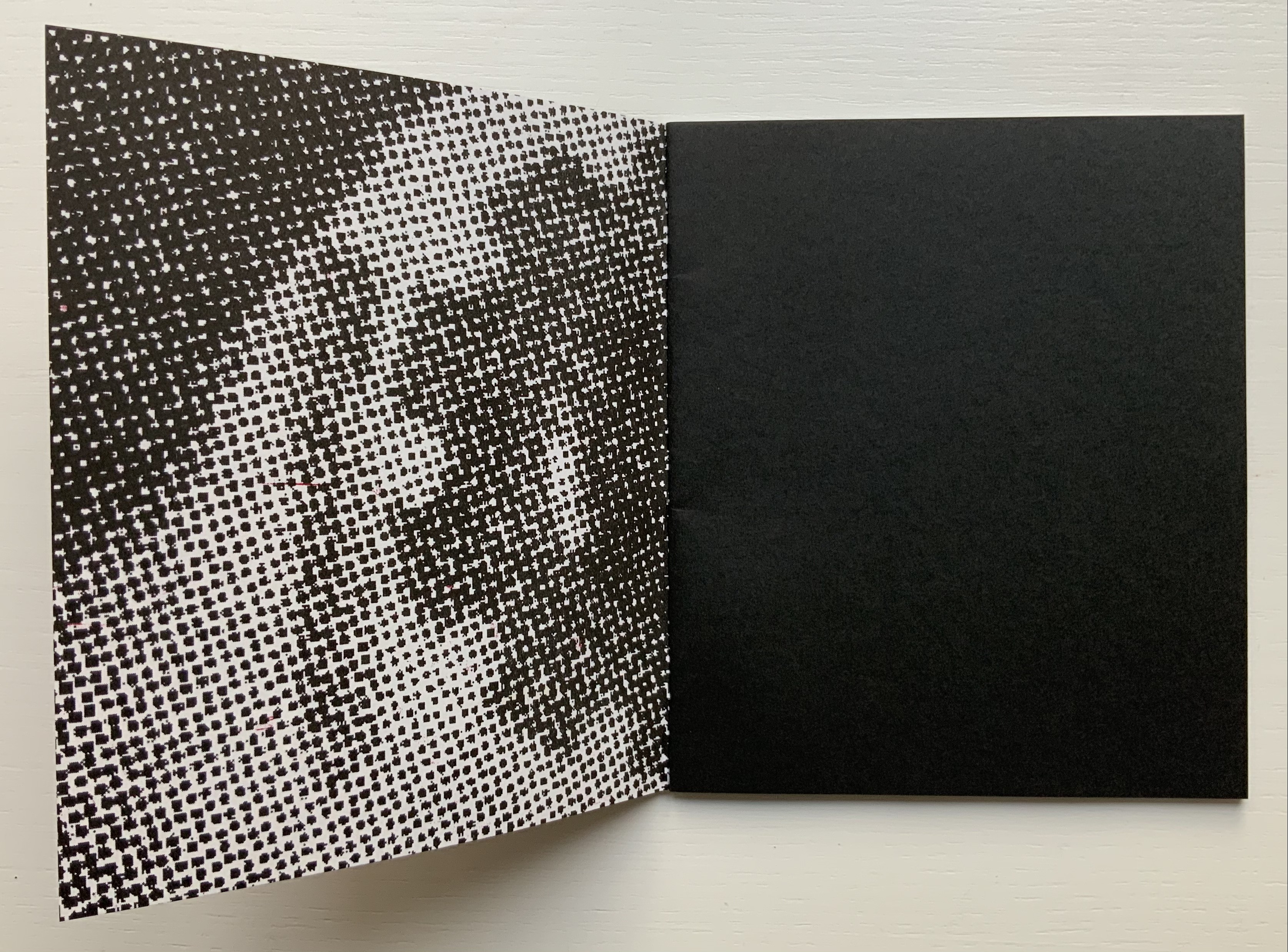 Cloth over boards, Japanese stab binding, 15 folded sheets, outer sides offset printed with enlarged “authors’ photos” clipped from dust jackets of art books repurposed by Spector for his bookworks, inner side printed (recto only) with text by and selected by Spector. H157.5 x W216 x D12.7 mm. Edition of 40, of which this is #40. Acquired from Olive Branch Press, 26 June 2020.