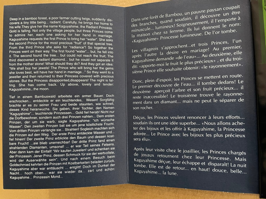 Like Snow White and Sleeping Beauty embedded for centuries in Western culture, the tale of the moon princesss exerts a similar pull on Japanese culture. The princess and her story have appeared in many media including manga and anime. In 2023, the choreographer Jo Kanamori and the Tokyo Ballet produced Kaguyahime set to the music of Claude Debussy. A hybrid plant (E.acuminatum x E.dolichostemon) has even been named after the tale.
