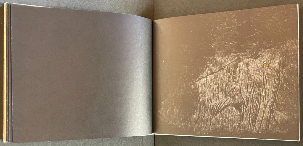 While Abt’s introductory essay rings the historical changes on the roots of book art — once there was Mallarmé’s Un Coup de Dés, but before Mallarmé, there was William Blake — the works included and the catalogue’s design ring some chimes of their own about book art. One way or another, all book art self-consciously draws attention to some particularly bookish element. For the most part, the 49 works listed in the catalogue ring true. The catalogue design itself, however, chimes not only to that notion of self-reflexiveness but also to wider notions about the nature of book art within contemporary art.