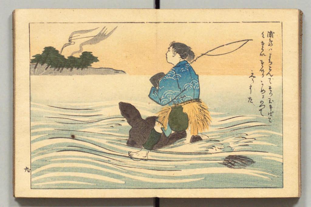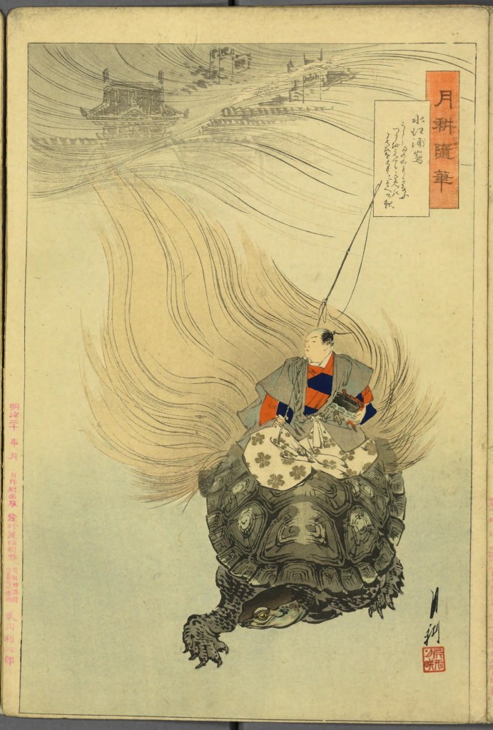 Japanese Fairy Tales Series. Bodleian Libraries. Schorr Collection f.22. The Fisher-boy Urashima, translated by Basil Hall Chamberlain, illustrated by Eitaku Kobayashi, and published by Hasegawa Takejiro (1886).