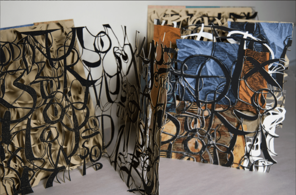 An extraordinarily fragile and rich work of print and sculpture, Calligrafitti #3 displays the inspiration that alphabets can provide for artists’ books. There are, of course, more inspirations or influence at work here.